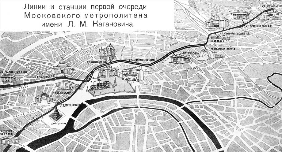 Строительство Московского метро началось в конце 1931 года, а первая линия открылась уже в мае 1935 и шла от станции «Сокольники» до станции «Парк культуры», с ответвлением на «Смоленскую». Тогда Московское метро насчитывало всего 13 станций, протяженностью 11 км, но принимая во внимание срок строительства менее 4 лет нужно отдать должное рабочим, инженерам и проектировщикам, приложившим немалые усилия для воплощения задуманного в жизнь.