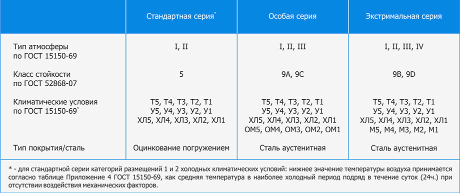 Стандартное исполнение кабельных конструкций УЗЭМИ предусматривает “горячеоцинкованное” антикоррозионное покрытие, что допускает эксплуатацию в помещениях с повышенной влажностью, в т.ч. метрополитенах (категория размещения 5 по ГОСТ 15150).
